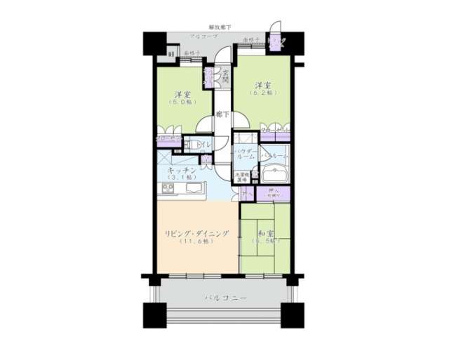 | 詳細間取 | 3LDK (洋5帖×1、洋6.2帖×1、和5.5帖×1、LDK11.6帖) | ||